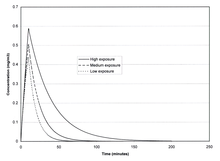 Figure 10. Time plots of permethrin air concentrations