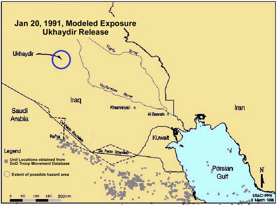 Figure 13. Map showing 40 kilometers radius around Ukhaydir and the locations of US forces on January 20, 1991